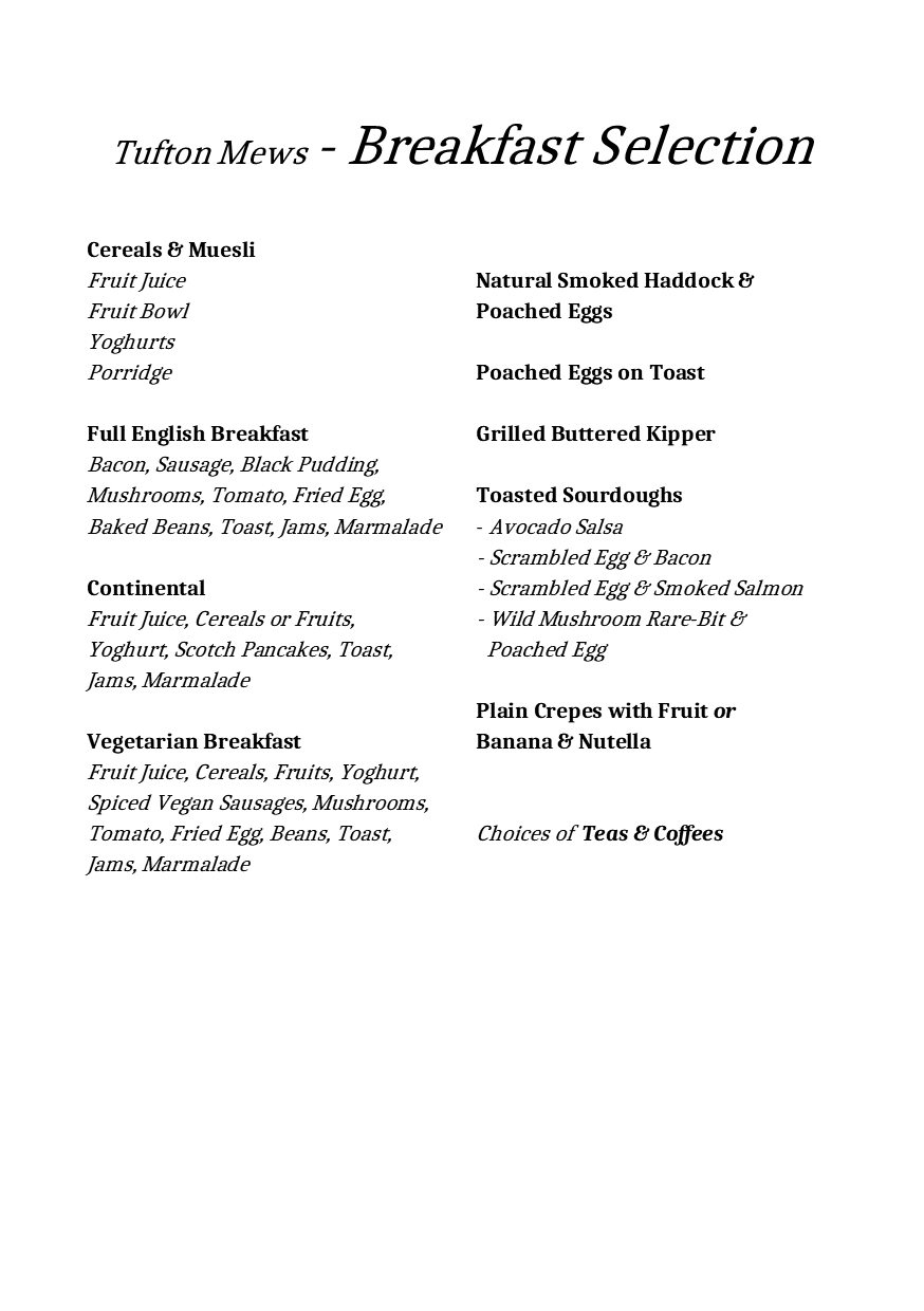 Tufton Mews Menus